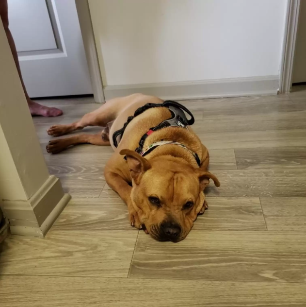 The 4-year-old Staffordshire terrier mix had been matched with a potential family, and the final meet-and-greet was scheduled at the Sam Swope Pet Treatment & Lifesaving Center. Hendrix arrived dressed in his best harness, tail wagging, full of excitement — ready to meet the people he hoped would become his forever family.