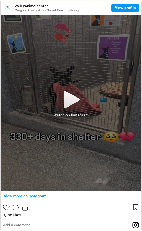 If you're interested in adopting Zelda, you can check out Valley Animal Center's adoption information page here.