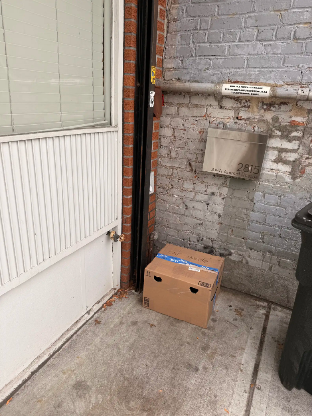 It was just another morning in Brooklyn, New York — until the shelter manager at AMA Animal Rescue (AMAAR) spotted something that made her heart stop. Behind two large trash bins sat a sealed cardboard box, tucked out of sight. On top, a few words were scrawled in marker that sent chills down her spine: