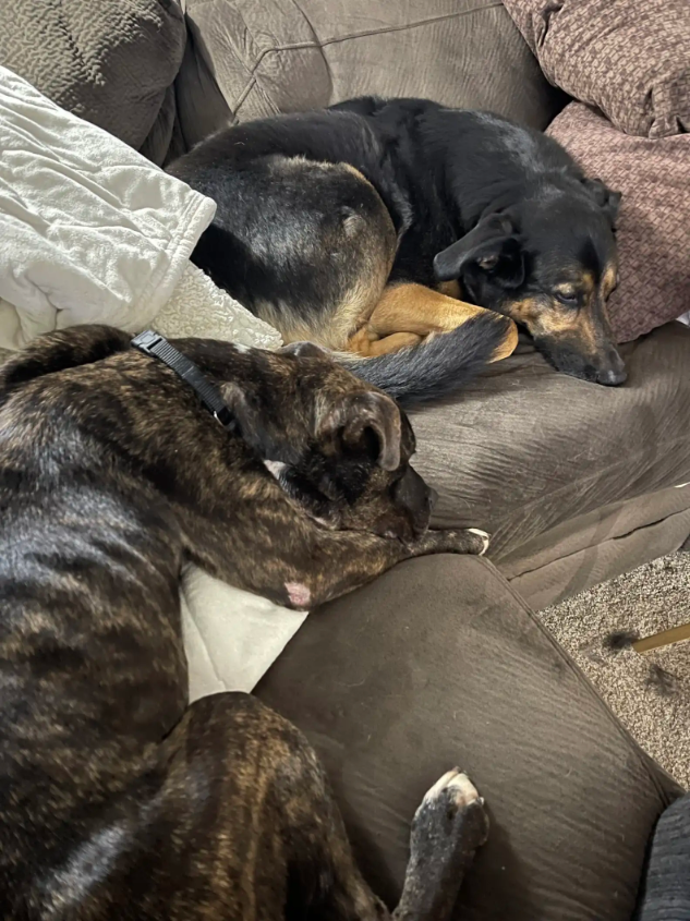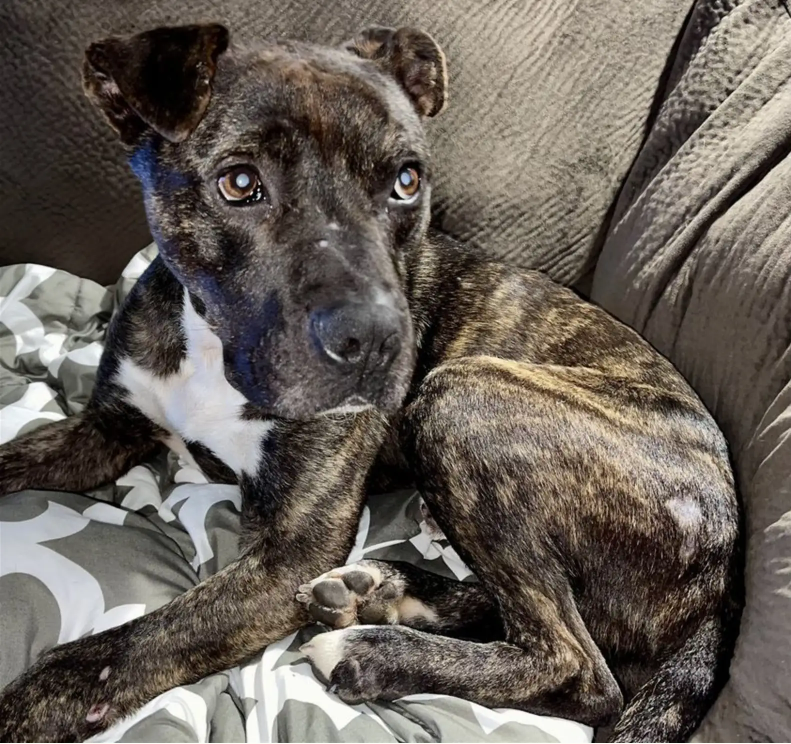 In foster care, Brutus received everything he’d been missing for far too long: constant medical attention, a carefully monitored refeeding plan, and endless affection. When he wasn’t curled up on his beloved heating pad, he followed his canine foster siblings from room to room, soaking up comfort and companionship.