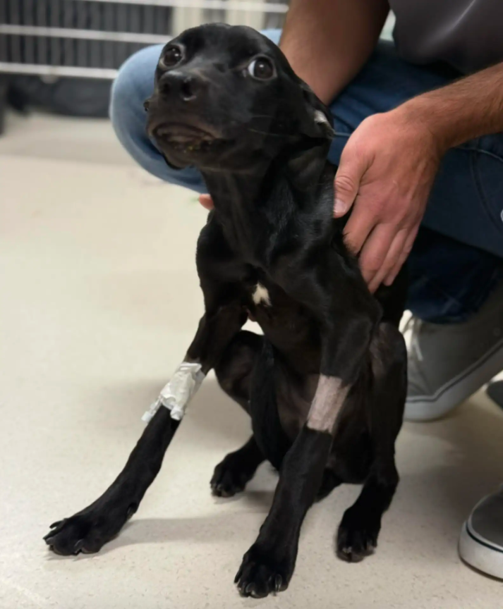 “We received an urgent plea to rescue this 9-month-old puppy who was found starving and emaciated,” the organization shared on Facebook.