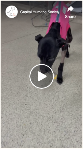 Once Zephyr no longer needs a feeding tube, she’ll be ready to move into a foster home. Capital Humane Society is optimistic that the resilient pup will soon find the loving family she deserves.