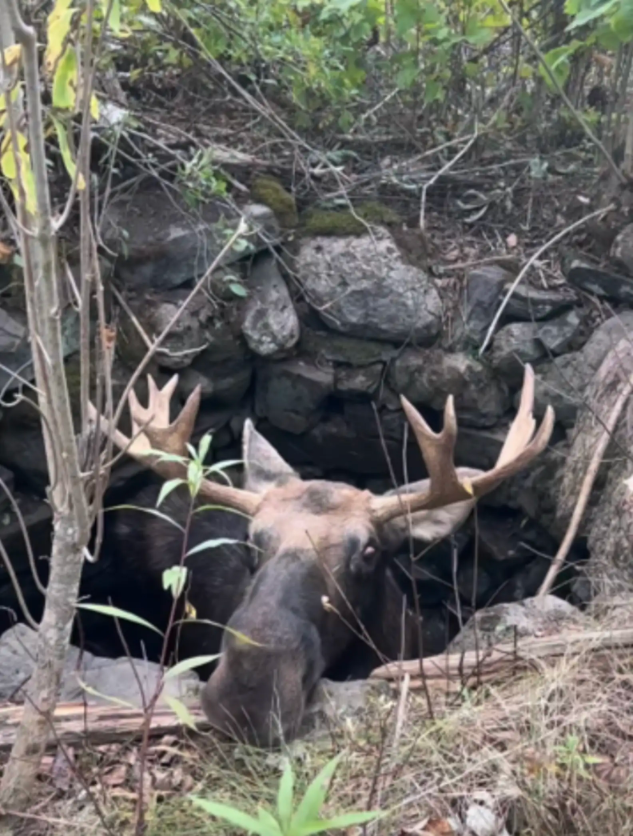 At the bottom of the well was an enormous moose, trapped with no way out.