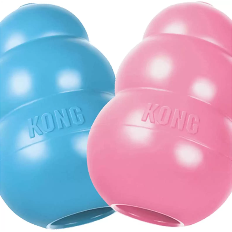 Made with a gentler rubber than the classic KONG, this version is perfect for teething pups. Stuff it with treats or puppy-safe snacks and watch him chase, pounce and bounce after its unpredictable wobble. It’s a boredom buster and a great teething soother.