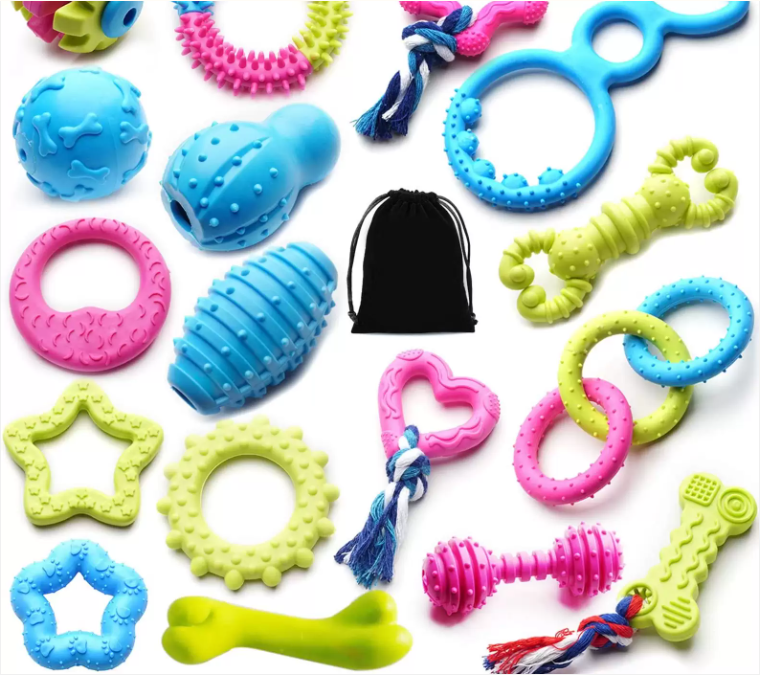 If you want everything in one bundle, this set delivers. It includes 17 chew toys, ropes, balls and tug toys, all made from tough, bite-resistant rubber and cotton. Great for busy puppies and budget-friendly for pet parents.