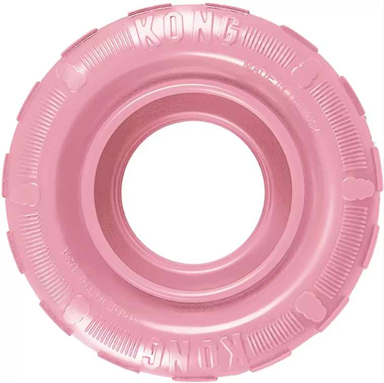 A fun twist on the classic KONG, these soft rubber “tires” are great for mental stimulation. The inner rim is perfect for smearing peanut butter or stuffing treats, turning playtime into a puzzle your pup will love solving.
