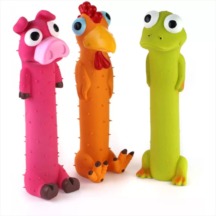 These long, funny-shaped latex characters squeak loudly and are great for tossing, chewing and tug-of-war. Because there’s no stuffing, there’s no fluff explosion if your pup gets extra rowdy.
