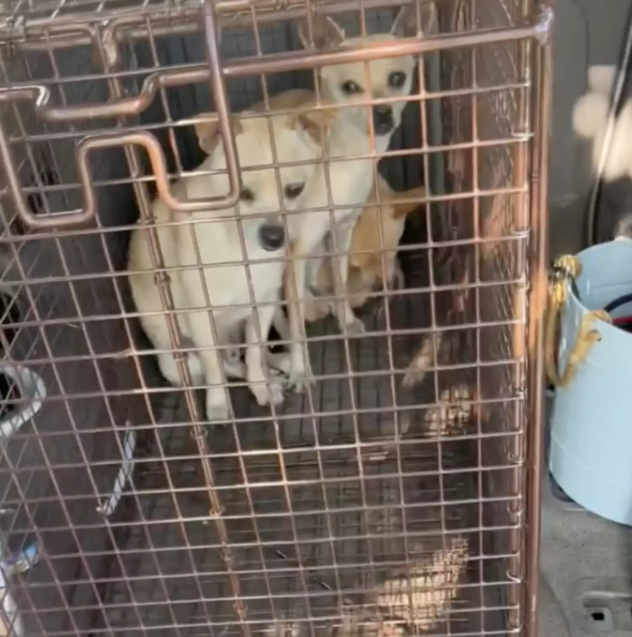 Determined not to separate them, Hall changed her strategy. She placed their friend’s trap inside her van and hid nearby. Sure enough, the two dogs rushed in to be close to him — and Hall was able to close the door behind them.