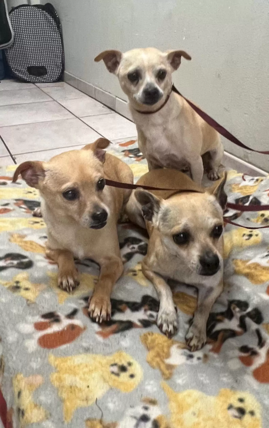 The trio — now named Naomi, Adam, and Jacob — were taken to Camino Pet Hospital for checkups. Vets discovered they were senior dogs in need of dental care, but otherwise in good health. Since then, they’ve been showering staff with kisses and, of course, napping in one big cuddle pile.