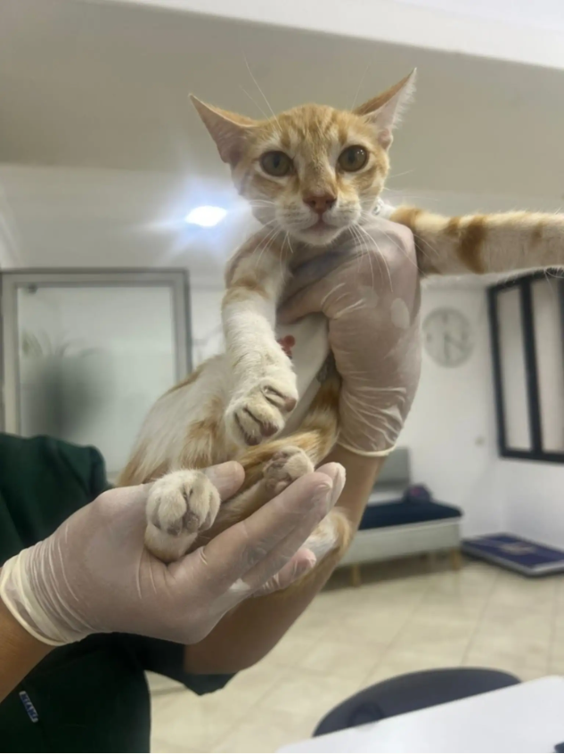 The kitten was extremely thin, and her belly was swollen — a sign she was likely suffering from tapeworms and other health problems common among stray animals.