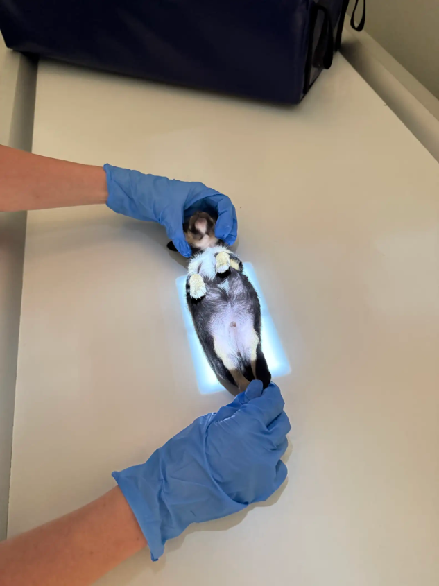 Despite his miniature size, the team managed to carefully position him for what may have been the world’s smallest X-ray.