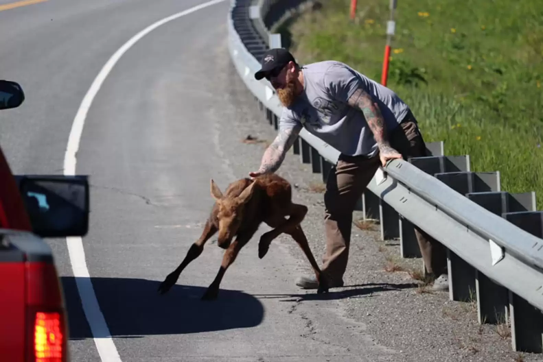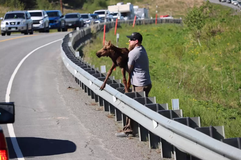 It was an incredibly risky move. A stressed mother moose can be extremely dangerous, especially when separated from her baby. If she feels threatened, she may charge, stomp, or kick — which is why people are generally advised never to interfere with wildlife.