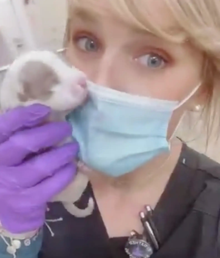 The puppy’s front leg was badly injured, and her breeder had brought her in to be euthanized. But as the fragile newborn rested against Izumine’s chest, something in her stirred.