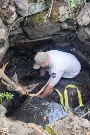 Wardens Pull Massive Moose To Safety After He Falls Into Hidden Well In Maine