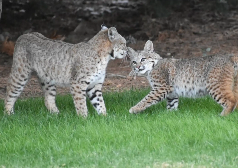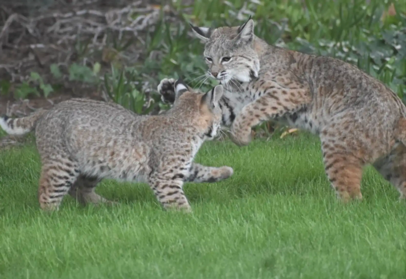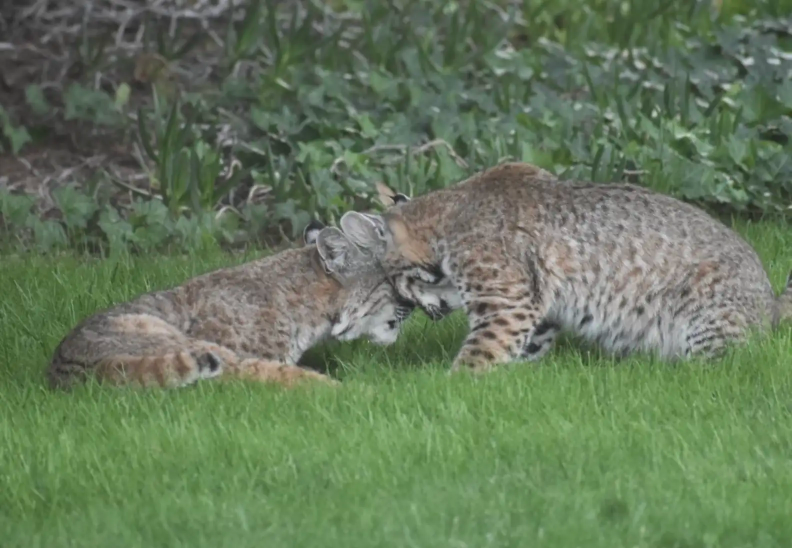 From about 25 yards away, Schneider observed as the bobcats wrestled and chased each other like oversized house cats, rolling through the grass and pouncing in surprise attacks.
