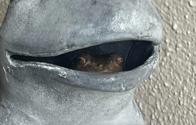 The tiny amphibian had apparently taken shelter inside the hollow statue after recent rainstorms, curling up comfortably inside his ceramic twin.