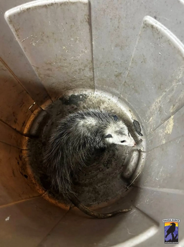 “After calming her down, we learned that she had just returned from a week-long vacation to find a dying opossum trapped in her trash can,” RRWC later shared on Facebook. “She described a heartbreaking scene: the poor creature was swarmed by flies, and a terrible odor filled the air.”