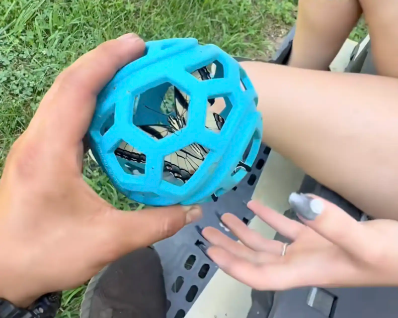 As they examined the ball, the couple began to piece together what might have happened. They believe a caterpillar must have crawled inside long ago, built its chrysalis there, and quietly transformed. By the time it emerged as a butterfly, its new wings were far too large to escape.