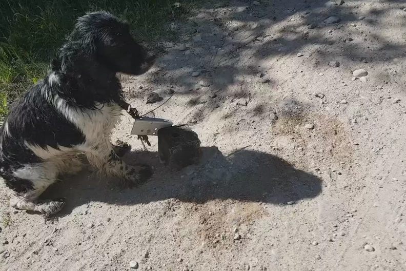 Petraškienė recorded the moment she came to the poor pup's rescue.
