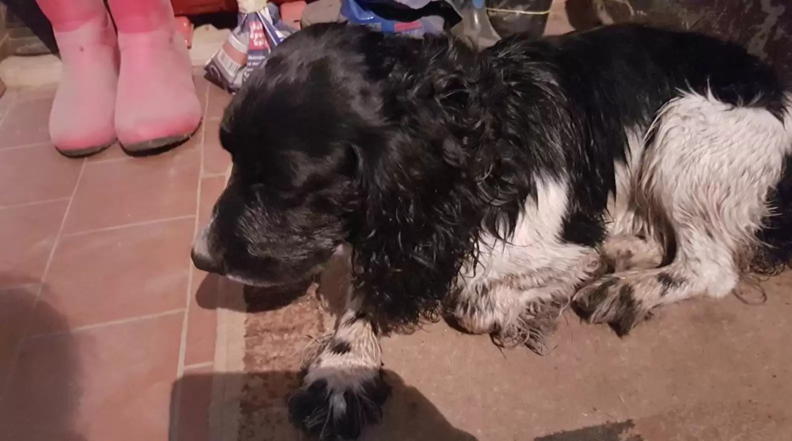But as she slowed down, her heart dropped — it was a drenched, trembling dog, barely able to stand.