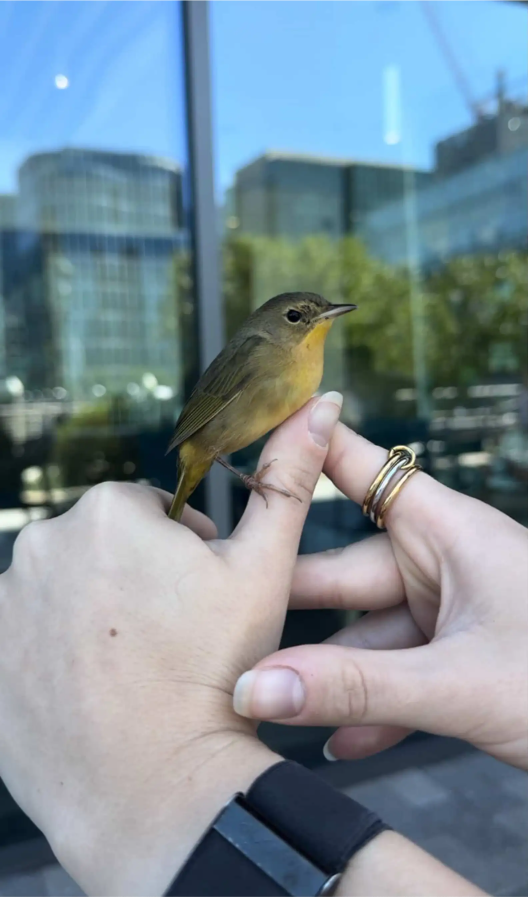 Out of nowhere, a tiny bird flew straight into one of the restaurant’s large windows, then fell softly to the ground, stunned.