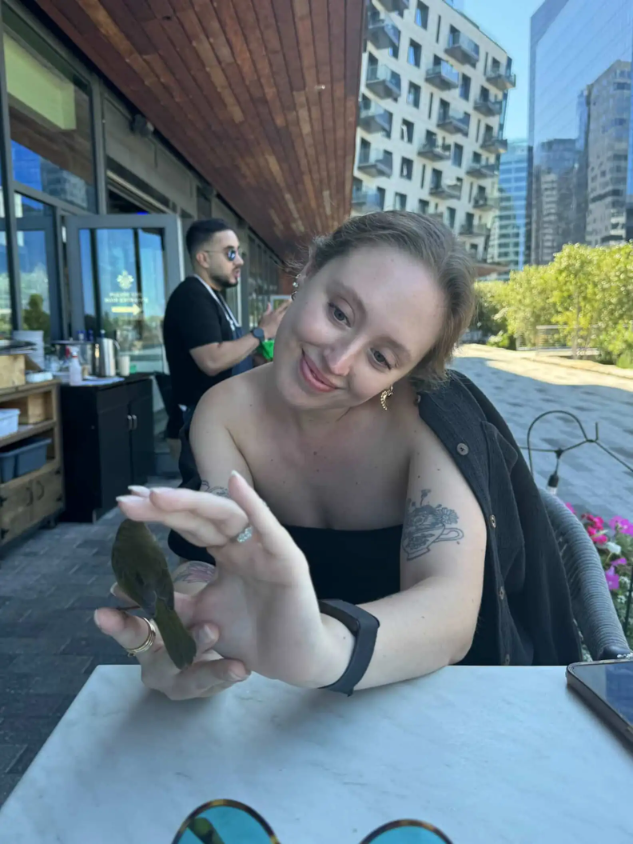 “It only made me more emotional seeing how trusting the bird was of me,” Scarlet said. “He nestled onto my fingers and slept through my entire meal. I ate one-handed.”